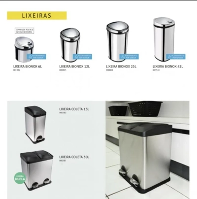 Lixeira Coleta 30L-Lixeira em aço inox escovado, com abertura da tampa por pedal e 2 compartimentos.Possui balde interno removível, com alças que facilitam a retirada de lixo. Ideal para separação de resíduos.